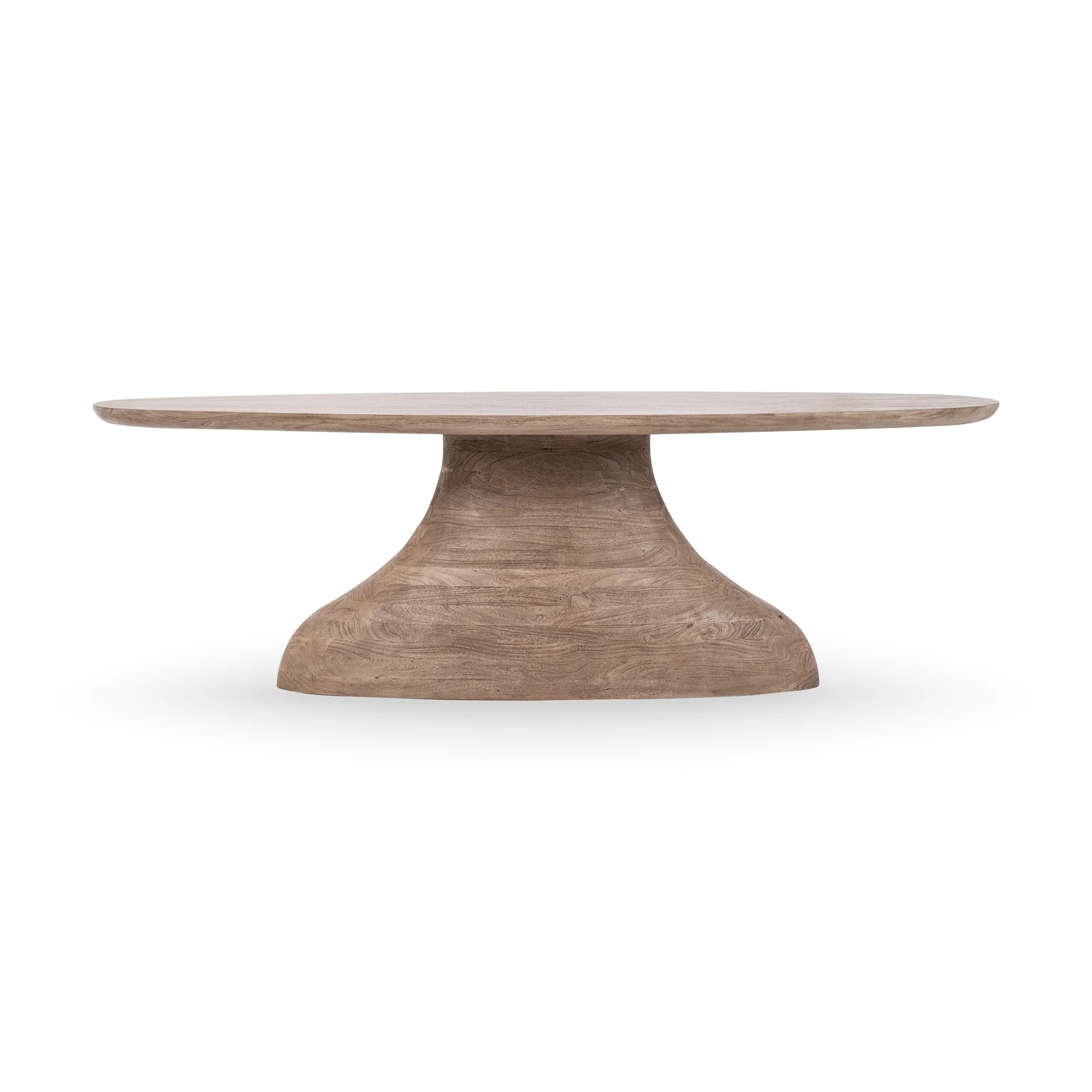 The Amra Solid Wood Oval Dining Table is a stunning centerpiece that combines exquisite craftsmanship with practical design. Crafted from durable acacia wood, its sandstone greige finish adds a warm, inviting tone to any dining area. The elegantly carved pedestal base not only provides sturdy support but also serves as a sculptural element that elevates your space’s aesthetic. With its smooth, dry finish, this table offers both beauty and resilience, making every meal a refined experience. Perfect for gatherings large or small, the Amra table transforms your dining room into a sophisticated setting where memories are made.