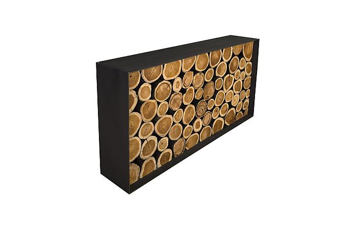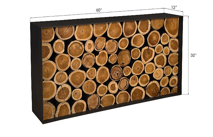 Renowned for its use of chamcha wood—a golden acacia sustainably sourced from the jungles of Asia—Phillips Collection presents the Boscage Framed Console Table, which elevates preserved natural wood elements into an elegant design centerpiece. Distinctive details include the delicate natural grain on the log surfaces, the textured rings on the wood slice tops that tell the tree's story, and the flawless assembly of wood slices within the frame, creating a masterpiece. Reflecting Phillips Collection’s hallmark modern organic style, the Boscage tables combine clusters of natural wood slices in geometric patterns, featuring chamcha wood with striking charred black edges, all set within a black iron frame that ensures a smooth, practical surface. Available in multiple shapes and configurations, these tables harmonize organic beauty with contemporary design.