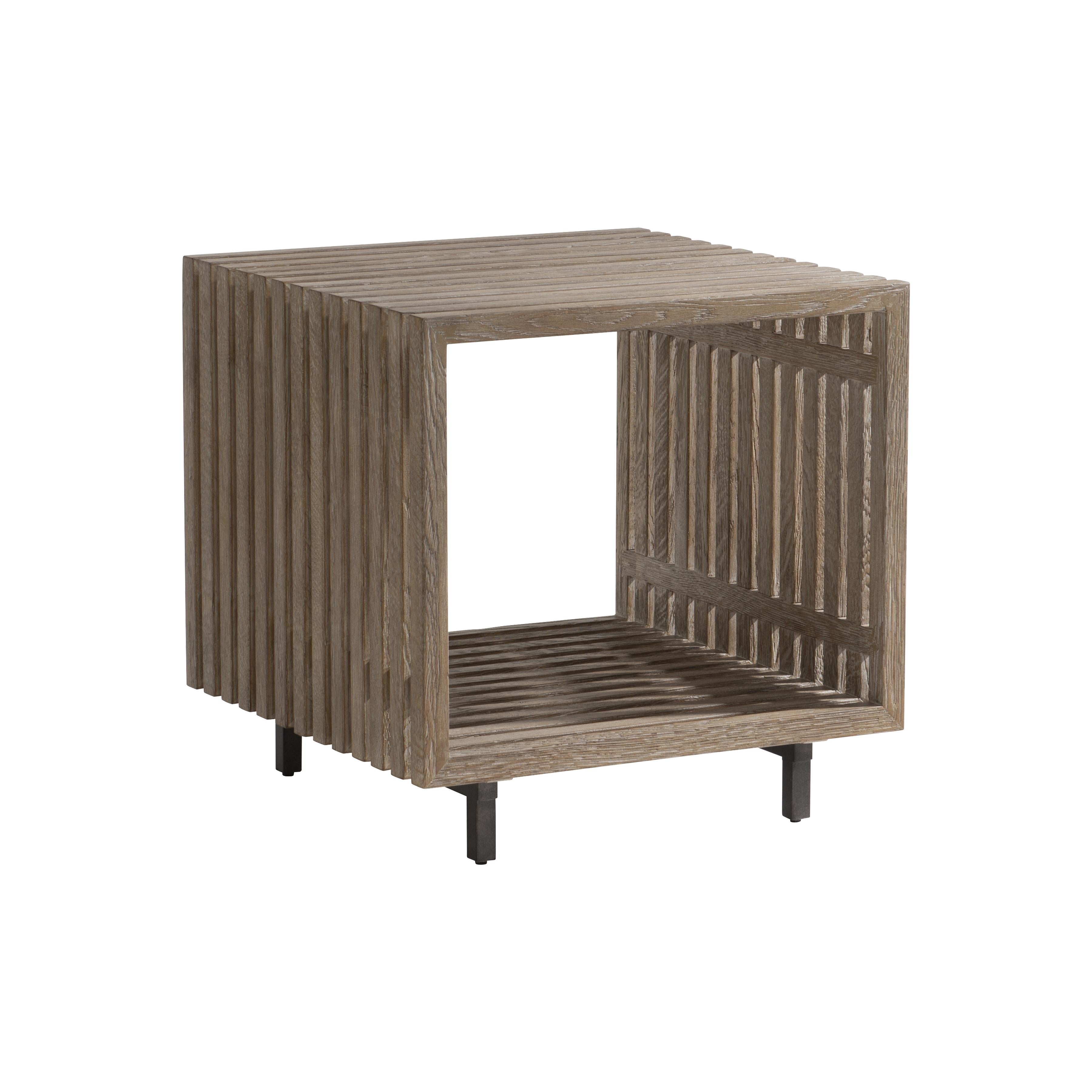 Taking a casual approach, the Brumley side table redefines a simple cube with understated sophistication. This versatile accent piece combines laid-back style with functional design, featuring a slatted wood top, sides, and shelf finished in warm Marcona tones that bring natural warmth to any room. The painted metal base in Anthracite finish anchors the design with slim, squared legs that create visual lightness while providing sturdy support. Perfect for living rooms, bedrooms, or entryways, the Brumley works equally well as a nightstand, accent table, or display surface. The open shelf design offers practical storage for books, decorative objects, or everyday essentials, making it both a style statement and a functional addition to contemporary and transitional interiors.