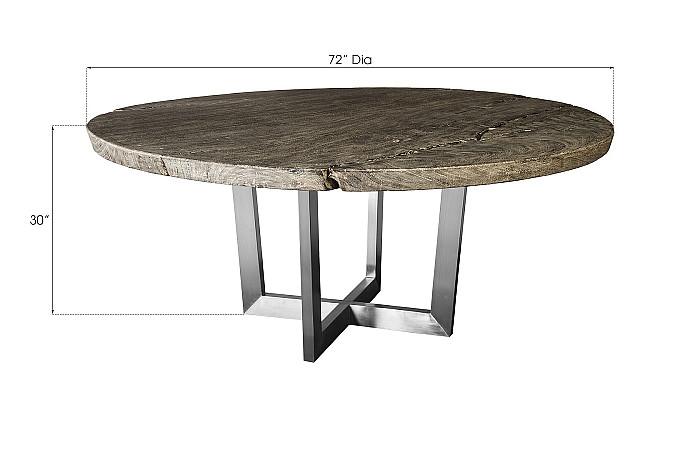 The Origins Round Gray Stone Dining Table features reclaimed chamcha wood, thoughtfully transformed from nature’s overlooked treasures into a striking, elemental design. Each unique table showcases distinct natural imperfections, emphasizing its one-of-a-kind character. Paired with a sleek brushed stainless-steel base, this gray dining table seamlessly complements a variety of interiors, from traditional and transitional to modern farmhouse and industrial chic. Part of the Origins Collection, it embodies the refined, modern organic aesthetic that defines the Phillips Collection.