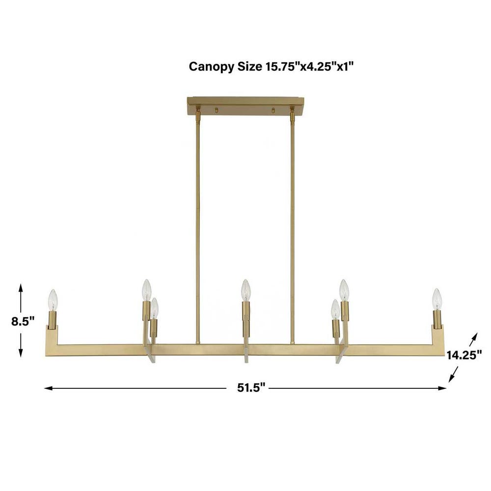 The Cordoba 8 Light Linear Chandelier combines clean, substantial lines with sophisticated craftsmanship to elevate any space. Its robust framework, crafted in a striking natural brass finish, exudes timeless elegance and durability. Suspended by two adjustable-length stems, this chandelier offers flexible installation to perfectly suit your room’s dimensions. The linear design with eight lights provides balanced illumination, making it ideal for dining rooms, kitchens, or expansive entryways. With its refined presence, the Cordoba chandelier enhances both modern and classic interiors with a bold yet elegant statement.
