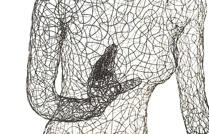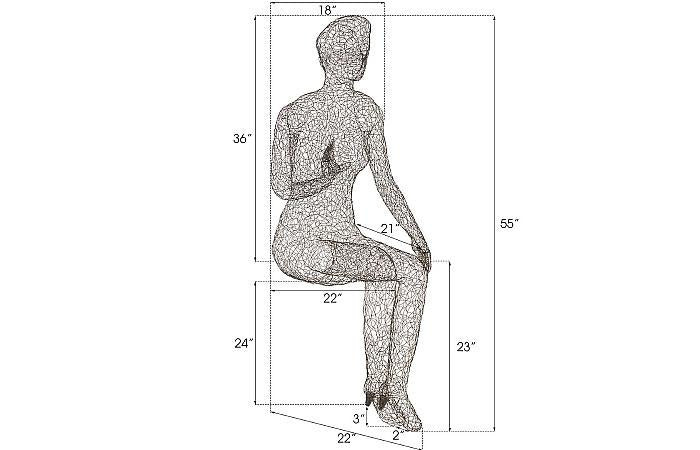At The Phillips Collection, our signature playful elegance shines through in the Crazy Wire Collection, and the Crazy Wire Lounging Female is a stunning example. This sculptural piece captures a relaxed, cross-legged pose, adding a graceful yet whimsical touch to any space. Crafted from slender black metal wire, its nude form stands 55 inches tall, bringing a dynamic and airy presence to your room. Perfect for those who appreciate art that combines lightheartedness with sophistication, this sculpture effortlessly elevates interiors, serving as a compelling focal point or a charming conversational piece.