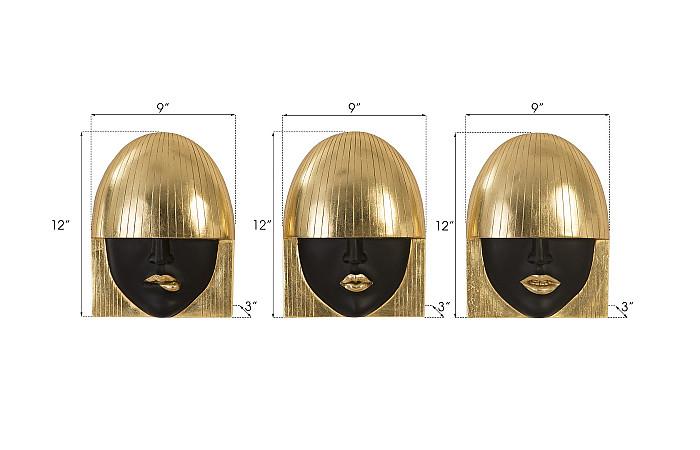 The human mouth vividly expresses a person’s mood, and our Fashion Faces Wall Art Collection captures this essence with refined elegance. This Small Black and Gold set comprises three composite sculptures, each portraying a unique expression—smiling, pouting, and kissing—in striking black and gold finishes. The carefully sculpted features are complemented by chic, precise bangs that add a modern yet organic touch to each piece. Designed to evoke emotion and style, these artworks embody the sophisticated aesthetic of the Phillips Collection, making them an exceptional addition to any contemporary interior seeking subtle drama and artistic expression.