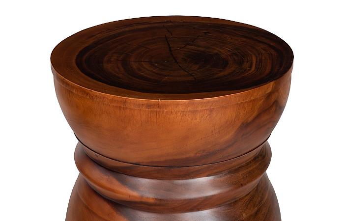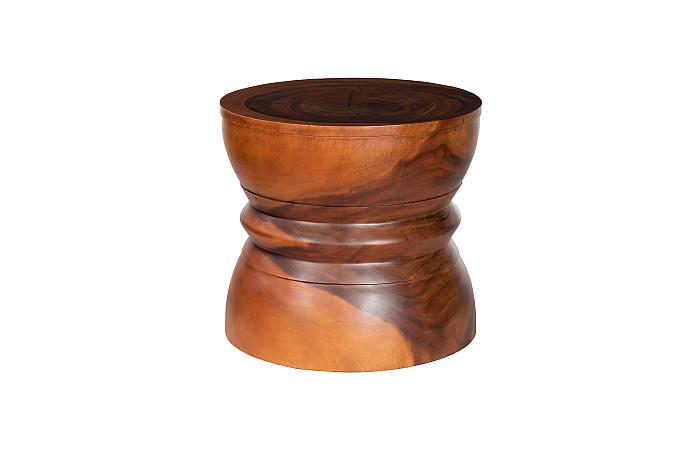 The Hourglass Side Table showcases a distinctive sculptural silhouette that commands attention in any room. Crafted from solid wood, this piece features a striking hourglass profile with rich natural brown and black tones that highlight the wood's authentic grain patterns. The substantial weight and sturdy construction make it equally functional as a side table or compact stool, offering versatility for various spaces. Whether positioned beside a sofa, in a bedroom corner, or used as additional seating, this statement piece combines artistic design with practical utility. Its timeless aesthetic complements both contemporary and traditional interiors, making it an investment-worthy addition to discerning home collections.