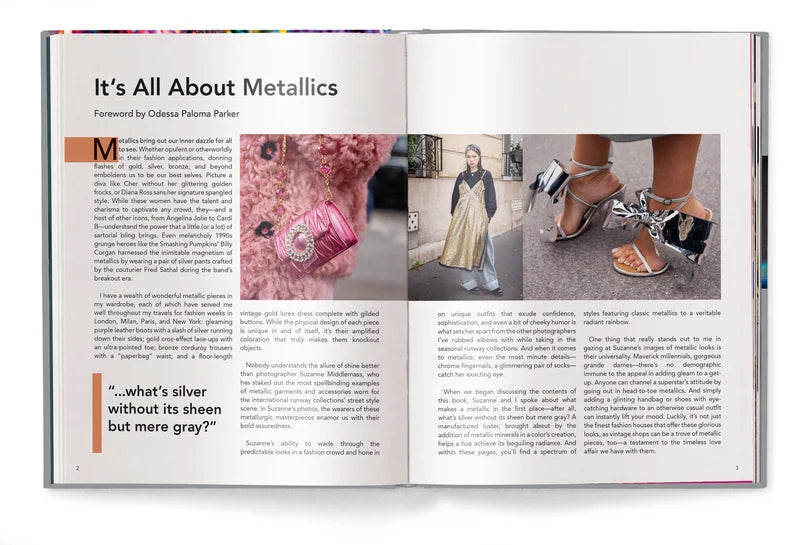 Metallic finishes have captivated fashion for generations, transforming ordinary pieces into luminous statements. Renowned street-style photographer Suzanne Middlemass explores this phenomenon in her latest coffee table volume, examining how chrome, gold, and iridescent accents elevate contemporary wardrobes. Drawing from her acclaimed work featured in VOGUE, Elle, GQ, and Grazia, Middlemass captures bold interpretations of metallics across jackets, footwear, accessories, and timeless silhouettes. Her lens follows designers, fashion icons, and influencers at major fashion weeks, documenting how they harness reflective materials for maximum impact. As the fifth installment in the "It's all about" series—following volumes on dresses, denim, animal print, and accessories—this expertly curated collection presents a comprehensive visual guide to styling with metallic elements—an indispensable resource for fashion professionals and enthusiasts seeking sophisticated inspiration.