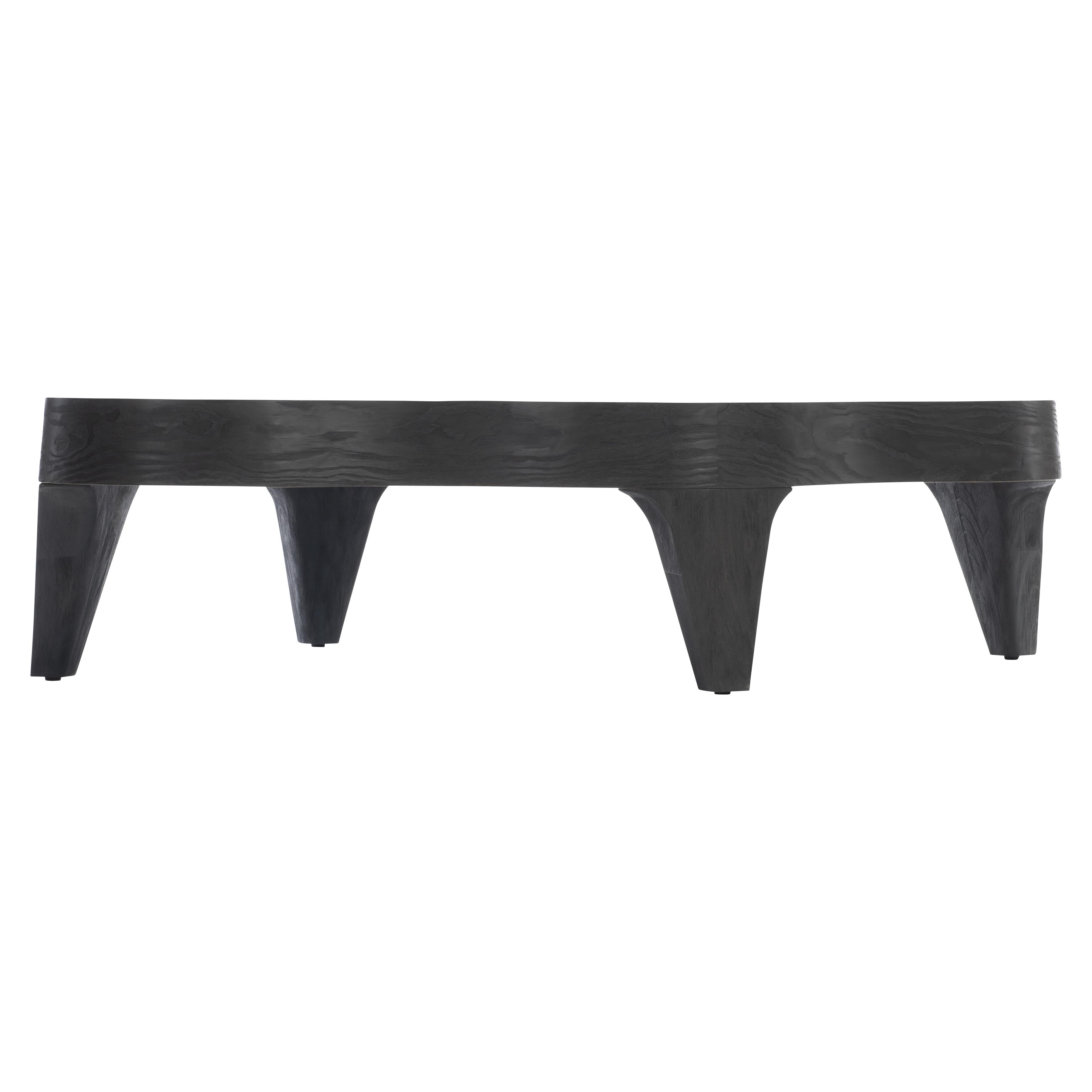 The freeform style of the Katana cocktail table creates a balance between modern art and functional design. The low profile, elegant tapered legs, and organic shape are the perfect antidote to hard edges and sharp angles. Crafted in solid pine and finished with flat cut pine veneers, this captivating table is finished in blackened pine that showcases depth and visual interest. The sculptural silhouette makes it an ideal centerpiece for contemporary living spaces, drawing the eye while maintaining visual lightness. Its generous surface area accommodates beverages, books, and décor without overwhelming the room. The blackened pine finish develops a rich patina over time, adding character and warmth to your interior. Whether anchoring a minimalist aesthetic or complementing eclectic furnishings, the Katana table serves as both a functional surface and a statement piece that elevates everyday moments into curated experiences.
