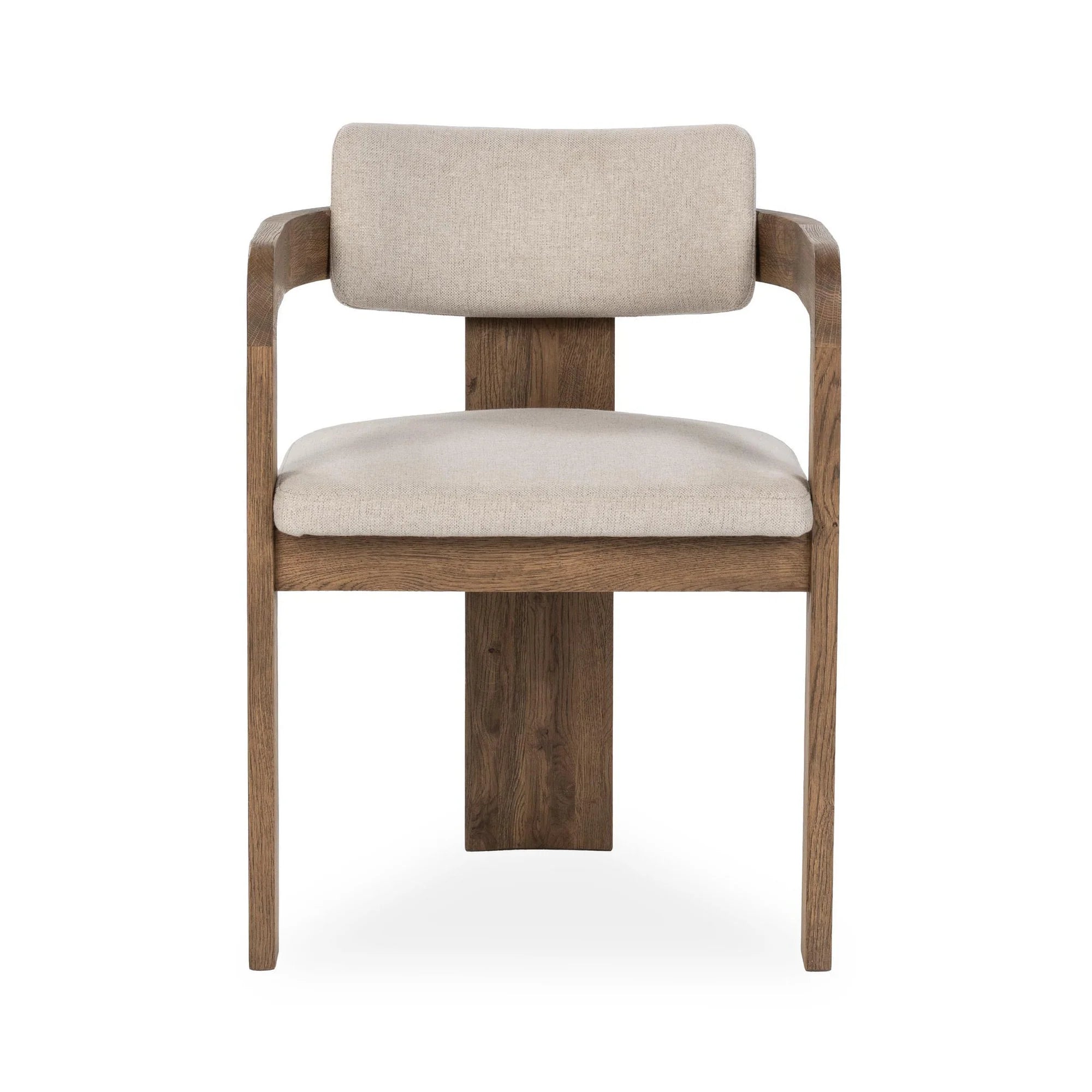 The Labelle Dining Armchair embodies refined simplicity with its artistic design and sculptural frame crafted from warm oak veneer. Its plush fabric upholstery adds inviting comfort while maintaining a clean, contemporary silhouette. The open back and crisp lines create an airy, organic feel that enhances any modern dining room, kitchen, or minimalist space. Combining durability with elegance, this chair offers both functionality and timeless style, making it an ideal choice for those seeking to elevate their dining experience with a piece that balances comfort and sophisticated design effortlessly.