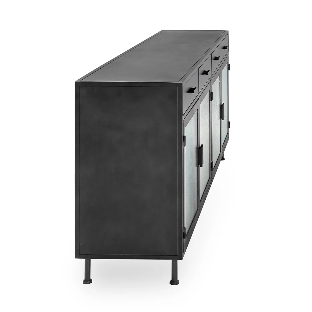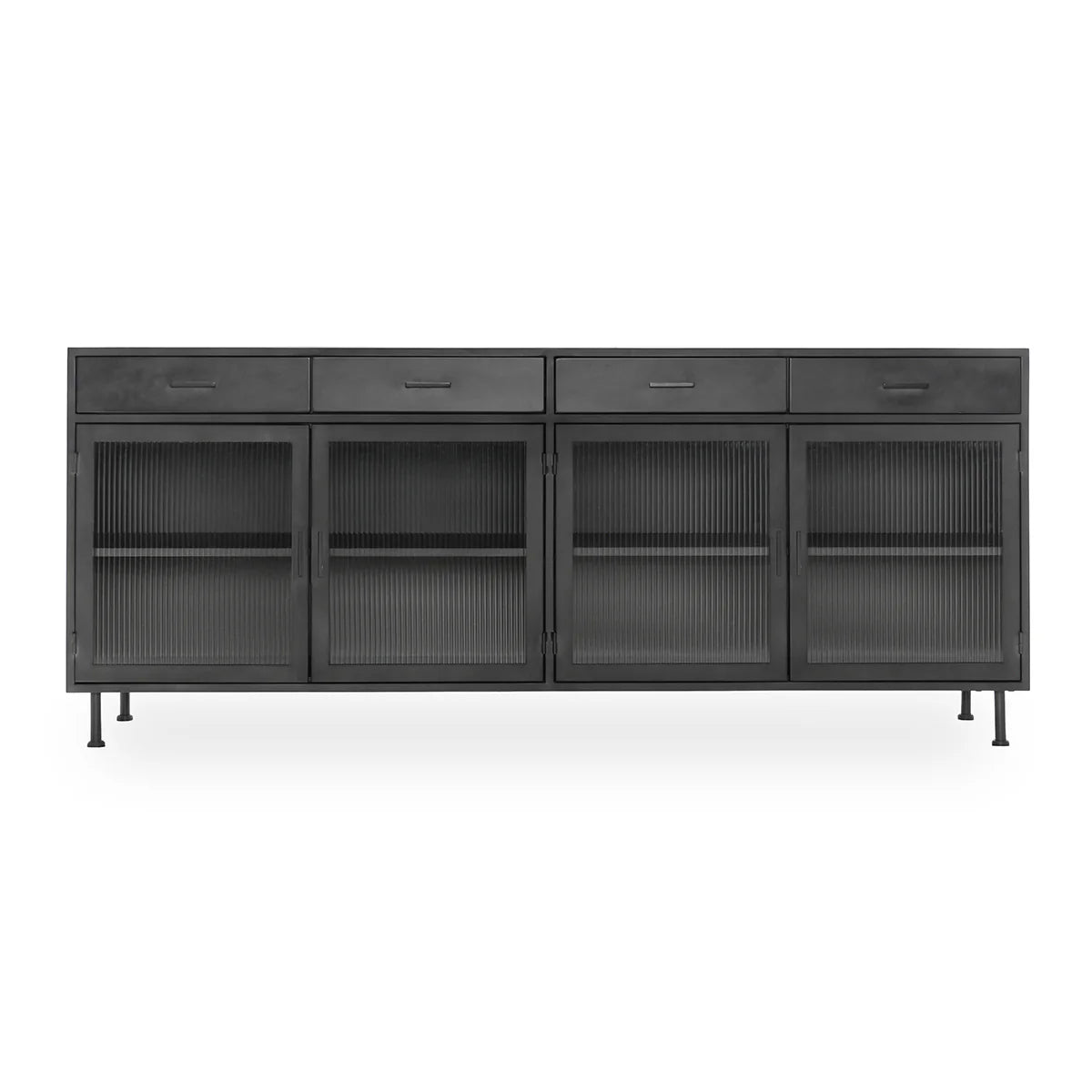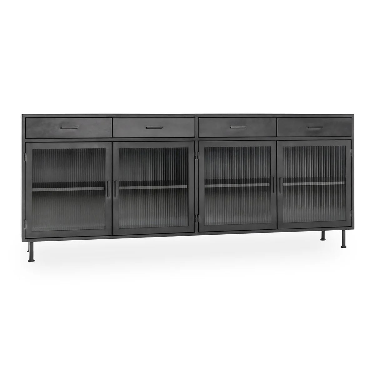 The Nore Metal/Glass 4Dwr 4Dr Cabinet from the Nore Collection showcases a refined industrial style that elevates any space with its bold yet elegant design. Crafted with a durable iron frame and featuring fluted glass doors, this cabinet perfectly balances texture and transparency, allowing you to display your belongings with a modern edge. Its steel finish adds a sleek sophistication, making it a versatile piece that complements both contemporary and classic interiors. Designed for both style and functionality, this cabinet offers ample storage with four drawers and four doors, helping you keep your space organized without sacrificing aesthetic appeal.