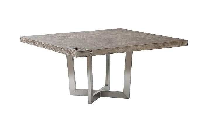 The Origins Straight-Cut Dining Table showcases the distinctive character of its woodgrain top, with each piece uniquely shaped by the natural qualities of the tree. Crafted from carefully reclaimed wood, this square dining table pairs a cross-legged brushed stainless steel base with a refined gray stone finish, delivering a contemporary aesthetic. As part of the Origins Collection, it embodies the modern organic philosophy that defines the Phillips Collection, blending natural beauty with sophisticated design.