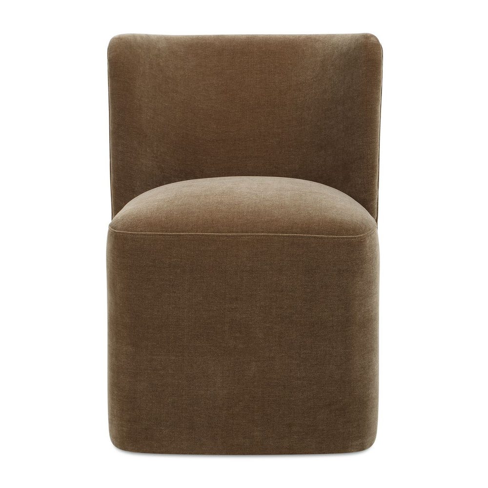The Outlook Dining Chair blends modern design with elegant sophistication, featuring a distinctive wrap-around back with gracefully inverted angles that invite comfort and style. Upholstered in a sumptuous truffle distressed velvet, this chair offers a tactile richness and depth of color that enhances any dining space. Its refined silhouette and plush cushioning provide a luxurious seating experience, making it an ideal choice for those who appreciate contemporary aesthetics paired with timeless comfort. Perfect for elevating both everyday meals and special gatherings with an understated yet striking presence.