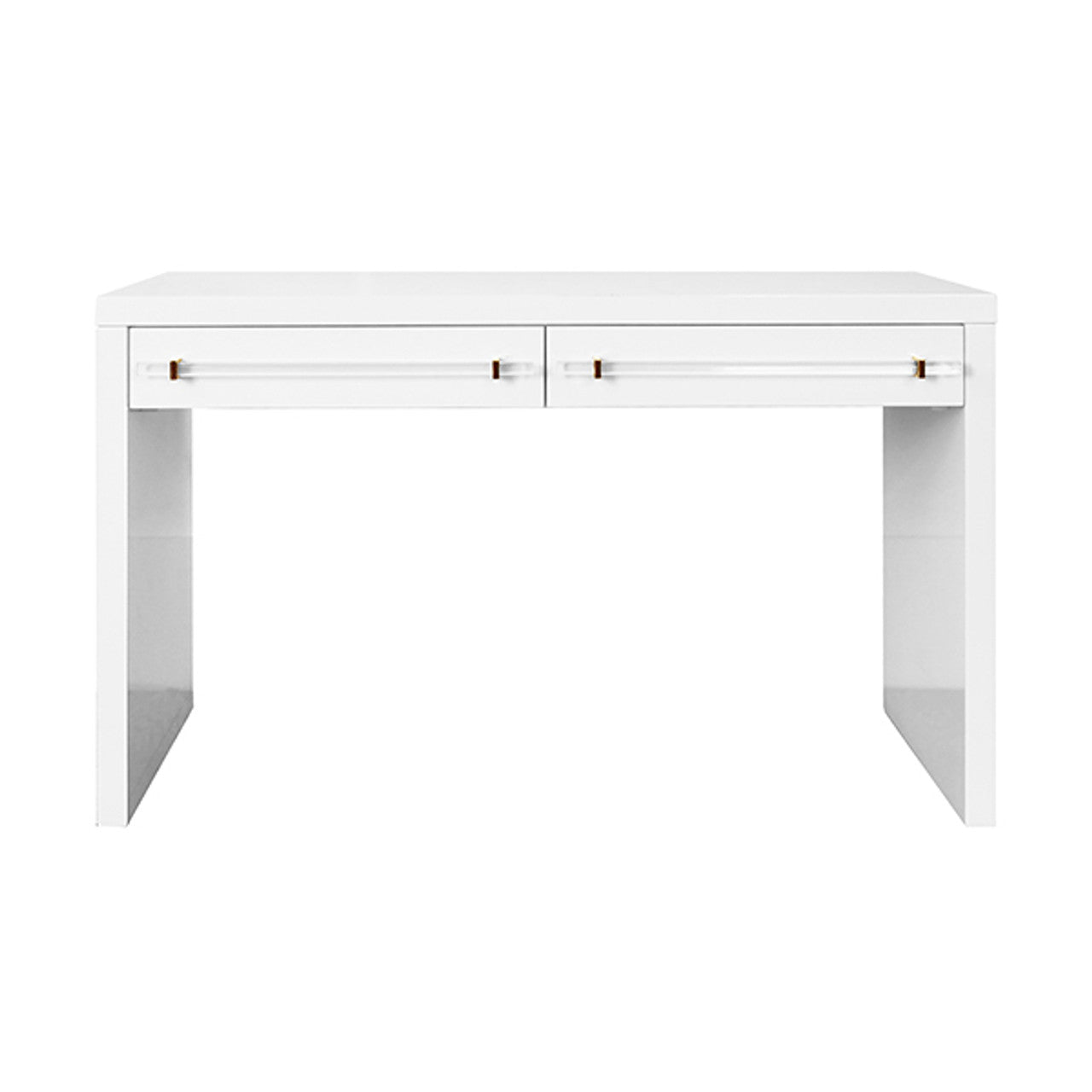 Old world charm meets our modern lifestyle.  Featuring a pristine, glossy white lacquer finish and on-trend acrylic, nickel and brass hardware, the Ralph desk brings understated opulence to your home office.