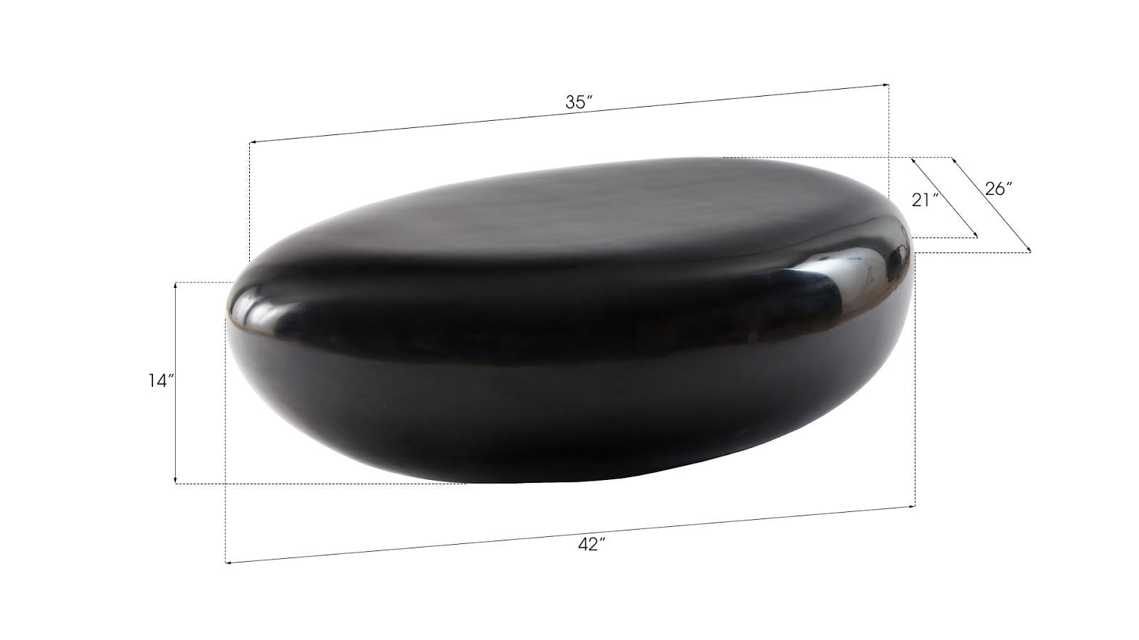 The captivating force of water gently transforms solid rock into smooth, water-worn stones. Inspired by this natural artistry, designer Jason Phillips created the River Stone collection, featuring the River Stone Small Black Cocktail table. Its soft, rounded silhouette eliminates sharp edges, reducing the risk of injuries while adding a refined simplicity to any space. Crafted from composite with an elegant black finish, this coffee table combines a practical flat surface with an organic form—perfectly embodying the modern, natural aesthetic central to the Phillips Collection.