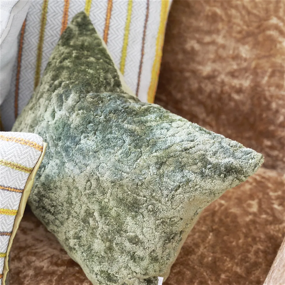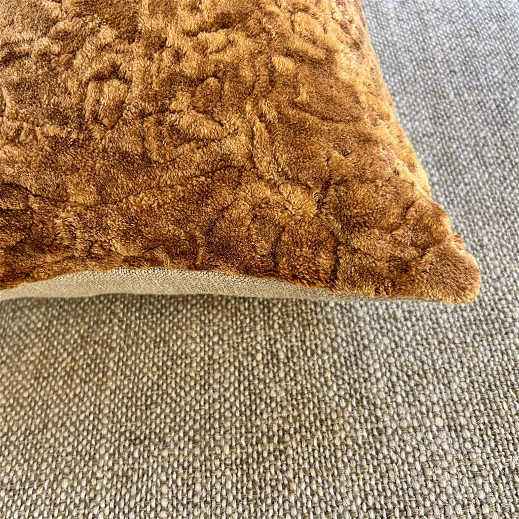 Elevate your interior with this exceptionally soft textured velvet decorative pillow, crafted to deliver both visual interest and tactile luxury. The deep pile construction creates a sumptuous feel that invites touch, while the artisanal spray dye technique produces distinctive, one-of-a-kind color variations across each piece. This small rectangular pillow showcases thoughtful design versatility with reversible colorways: rich moss paired with Carlyon olive on one side, and warm copper complemented by Carlyon driftwood on the reverse. The handcrafted nature of the dyeing process ensures no two pillows are identical, making each a singular addition to your home. Perfect for layering on sofas, beds, or accent chairs, this pillow combines sophisticated texture with practical functionality, allowing you to refresh your décor by simply flipping to your preferred palette.