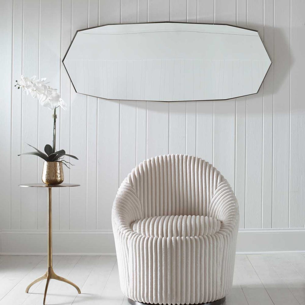 The Vault Mirror brings a modern edge to any space with its oversized design and striking deep, angular metal band frame finished in plated antique brass. Its versatile style allows you to hang it horizontally or vertically, adapting effortlessly to your room’s layout. This mirror not only enhances your décor with a sophisticated metallic sheen but also creates a sense of spaciousness by reflecting light and surroundings. Perfect for living rooms, bedrooms, or entryways, the Vault Mirror combines contemporary aesthetics with functional elegance to elevate your home’s ambiance.