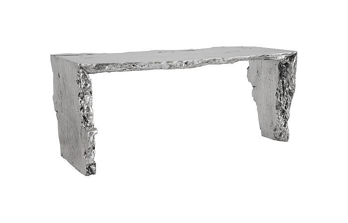 The Waterfall Silver Desk represents contemporary design, crafted from composite with a striking silver-leaf finish. Its fluid, curving edges add a tactile dimension and warmth to any room, while the luminous surface maintains an elegant glow. As remote work becomes increasingly common, this refined home-office desk offers both style and function. The Waterfall collection also includes wood variations, embodying Phillips Collection’s signature modern organic philosophy.