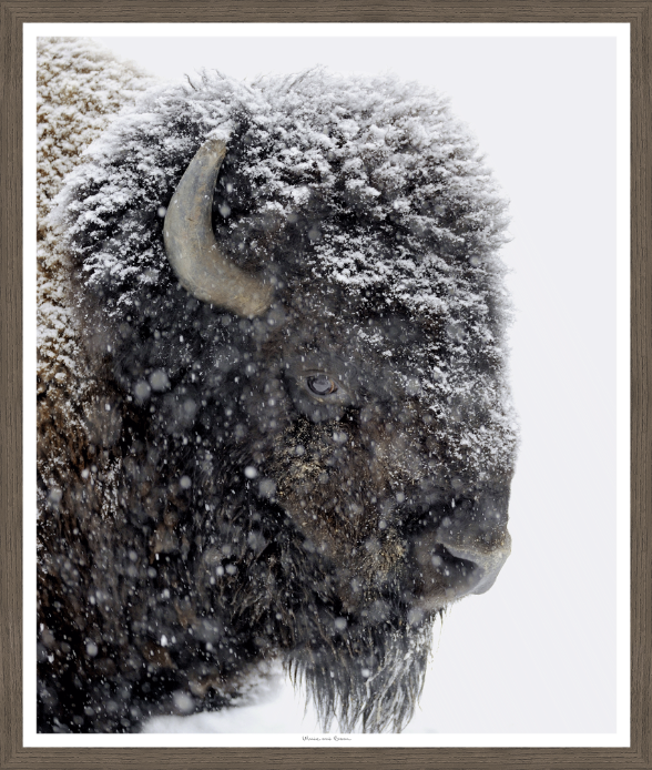 Celebrate the serene beauty of winter with the White Out Bison, thoughtfully curated by the LDN Studio Team. This captivating piece features striking photography of majestic bison gracefully standing in pristine snow, capturing both their strength and tranquility. Available in a range of frame sizes and exquisite finishes, this artwork seamlessly blends nature's raw elegance with refined style. Perfect for adding a sophisticated touch to your space, the White Out Bison invites a quiet, powerful presence into your home or office. Elevate your décor with this timeless representation of wilderness and calm.
